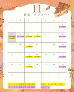 11月のお休み(ヘアー・ネイル)